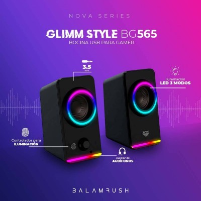 ¡Potencia tu experiencia de juego con las Bocinas 2.0 Gamer Glimm Style BG565 Balam Rush! Con una conexión Bluetooth/Auxiliar, controlador touch y una llamativa iluminación LED en color negro, este producto de la marca BalamRush es imprescindible para los amantes de la electrónica. Sumérgete en un sonido envolvente y de alta calidad para disfrutar al máximo de tus juegos favoritos. ¡No te conformes con menos, eleva tu experiencia auditiva con Bocinas 2.0 Gamer Glimm Style BG565 Balam Rush!