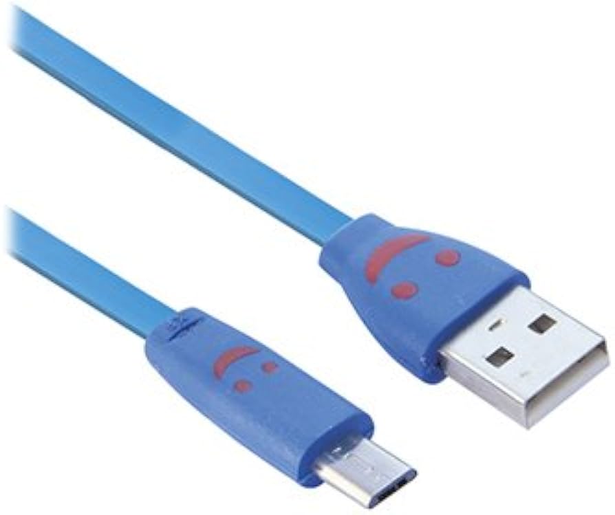 Cable Usb a Micro Usb Plano con Cara Feliz 1 M Azul