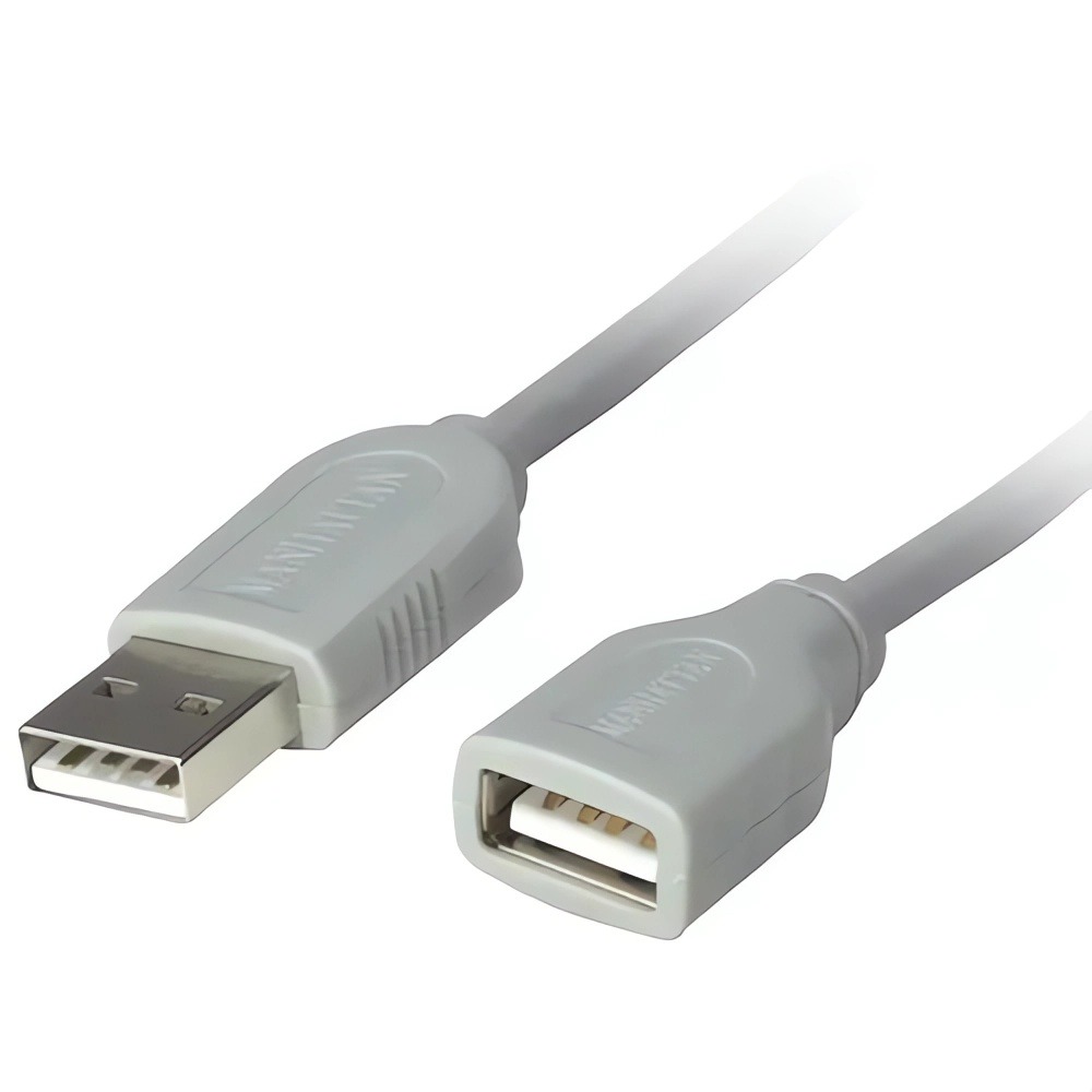 Cable USB - Extension MANHATTAN, 3 m, USB A, USB A, Macho/hembra, Gris 317238