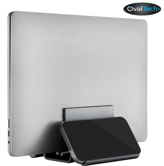 Soporte vertical para computadora portátil / Celular 2 en 1 OVALTECH OVDESK-LAP. Color negro. Peso del Producto .176kg. Garantía 1 años.