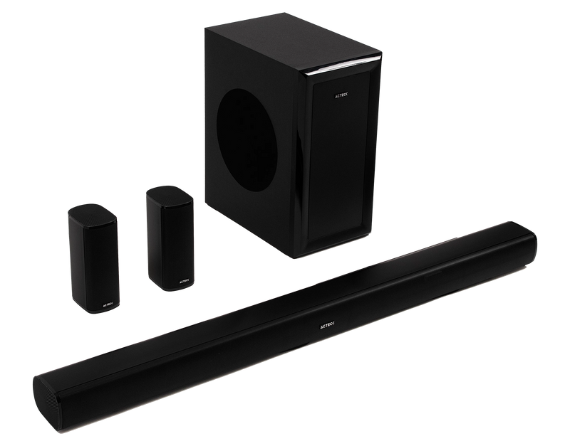 Teatro en Casa Dynamic Stage BS700 Acteck Elite Series 5.1 Canales, Dolby 180w, Conectividad: Bluetooth 5.3, USB-A, HDMI (ARC), Óptical, 3.5mm. Control Remoto incluido, 2 Saltelites traseros Inalámbricos, Subwoofer Inalámbrico, Color Negro. AC-941365
